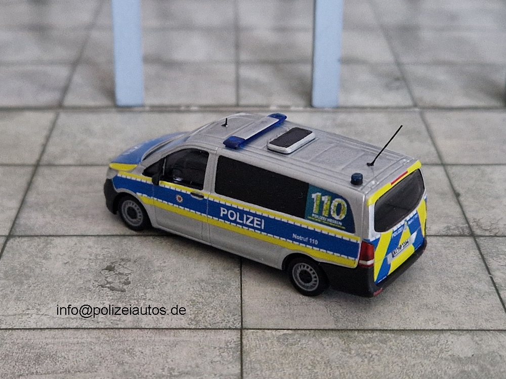 Funkstreifenwagen der hessischen Polizei mit der neuesten Nachwuchswerbung. Zum Bau: