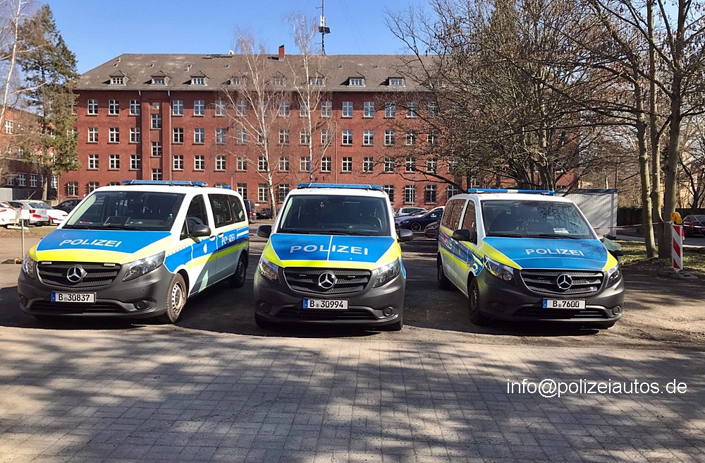 Funkstreifenwagen der Polizei Berlin, hier verschiedene Beklebungsvarianten der aktuellen EWA.