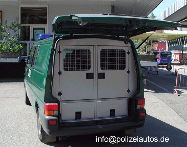 | Beschreibung: | ... international: Anhaltedisplay in englischer Sprache -FOLLOW ME- und Transportboxen für Diensthunde bei einem VW T4 des Grenzzolldienstes am Zollamt Weil am Rhein-Friedlingen |