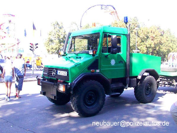 großer Unimog mit Anhänger bei Aufräumarbeiten nach Festumzug beim Münchner Oktoberfest 2003.