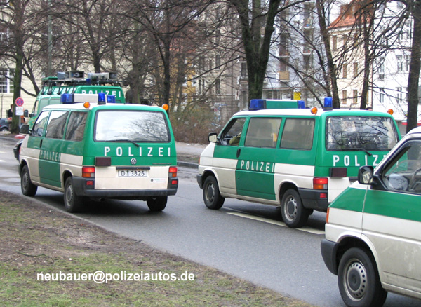 Fahrzeuge der Bereitschaftspolizei NRW begleiten den Demonstrationszug.