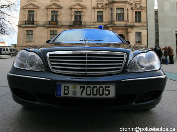Begleitfahrzeug Mercedes-Benz S-Klasse des Bundeskriminalamtes vor dem Reichstag.
