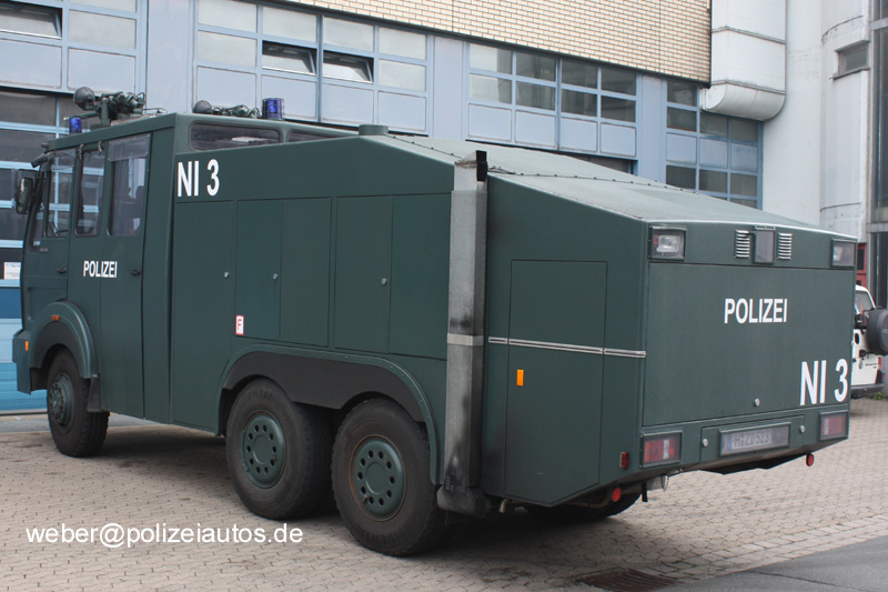 Beschreibung: | Wasserwerfer der niedersächsischen Bereitschaftspolizei nach Umstationierung mit neuer Zulassung und zusätzlicher Beschriftung: NI 3 |
