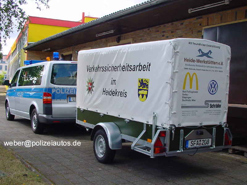 Funkstreifenwagen, der auch vom Verkehrssicherheitsberater genutzt wird. Für sein Equipment führt er einen Anhänger mit.