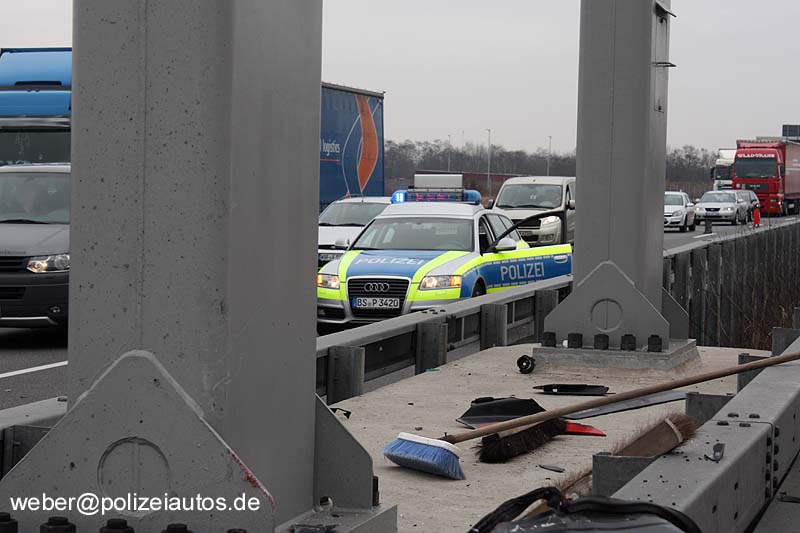 | Beschreibung: | Blick zurück auf eine gerade durch die Polizei unter Zuhilfenahme eines Rüstzuges der Feuerwehr über drei Fahrstreifen und Standspur eingerichtete Vollsperrung an einer Unfallstelle, auf die dort wartenden Verkehrsteilnehmer. In der zweiten Ansicht sperrt ein Fustw. den ganz linken Fahrstreifen, auf dem sich Unrat und die herübergedrückte Leitplanke befindet. |