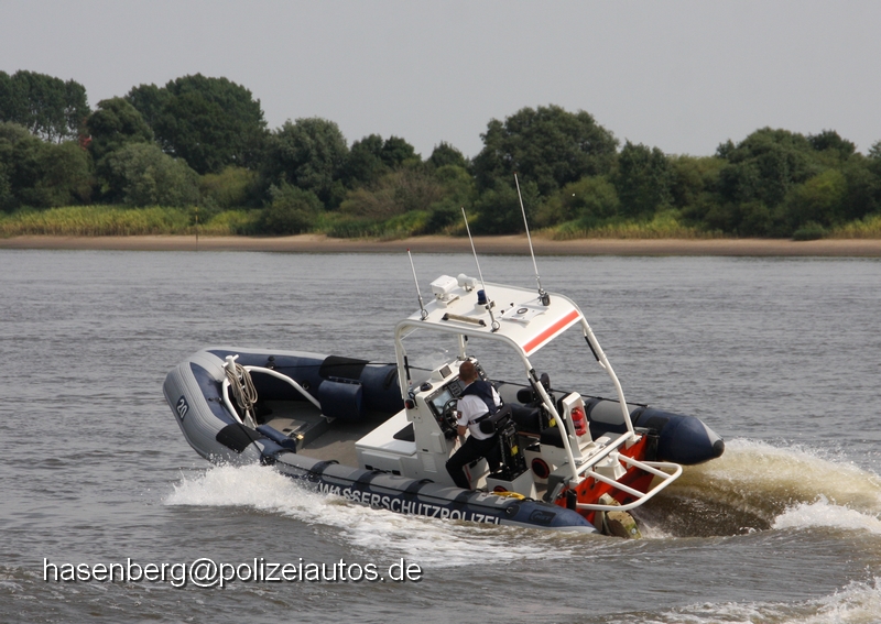 | Beschreibung: | Trailerbares Polizeistreifenboot 20 der WSP Niedersachsen, Heimathafen: Brake. Technische Daten Hersteller: Köser Marine GmbH Kiel Bauart: Festrumpfschlauchboot Typ: Ribcraft KM RC 6.80 Baujahr: 2012 Länge ü.A.: 6,50m - Breite: 2,50m - Tiefgang: 0,50m Antrieb: Innenborder - VOLVO-Penta 5 Zylinder Common Rail Diesel Einspritztechnik Leistung: 160 kw/220 PS bei 4000 UpM Höchstgeschwindigkeit: 40kn / 74 km/h Dauergeschwindigkeit: 25kn / 46 km/h Reichweite: 130 sm / 240 km Kraftstoffvorrat: 150l |