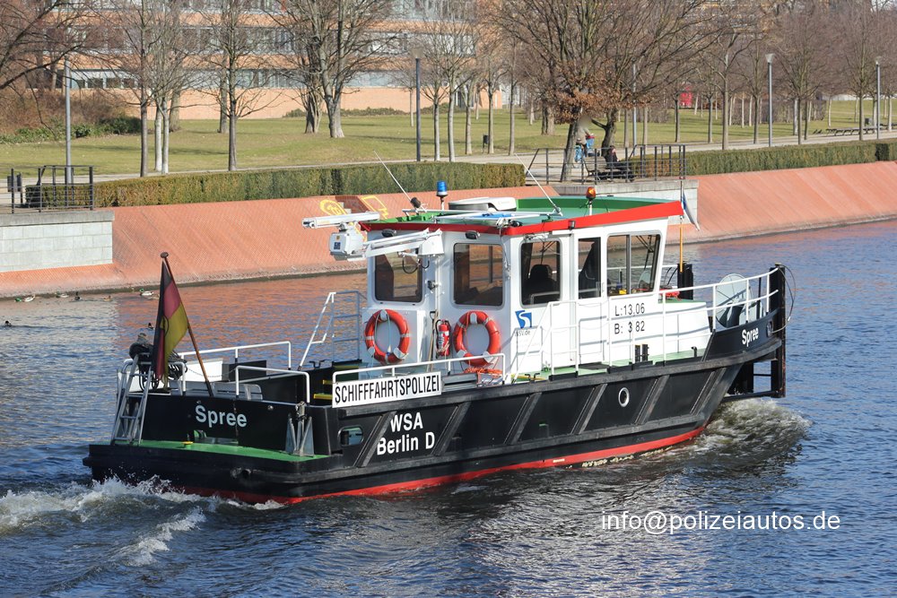 | Beschreibung: | Schub- und Aufsichtsboot SPREE des Wasser- und Schifffahrtsamtes Berlin. Technische Daten Länge: 13,06 m Breite: 3,82 m Tiefgang: 0,95 m Antriebsleistung: 144 kW Motor: Deutz BF 6 M 1013 ECP Antrieb: North American Marine Jet 150 (Strahlantrieb). Fotos und Infos: Stefan Fleischer |