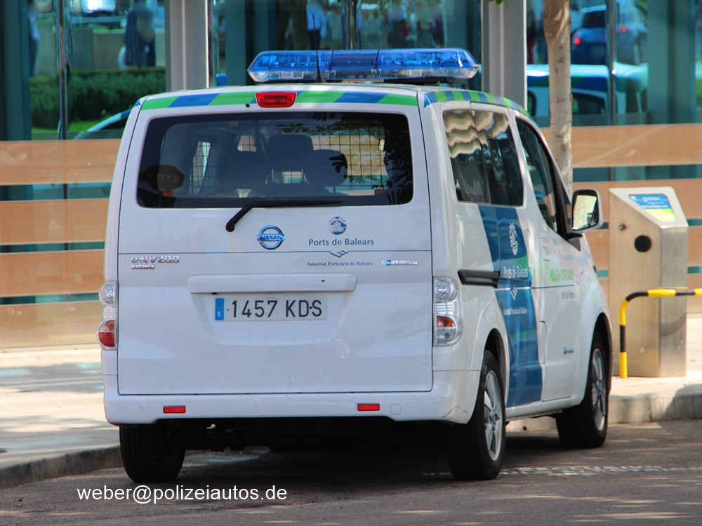 Rein elektrisch angetriebenes Einsatzfahrzeug der Policia Portuària im Hafen von Palma de Mallorca (2019).