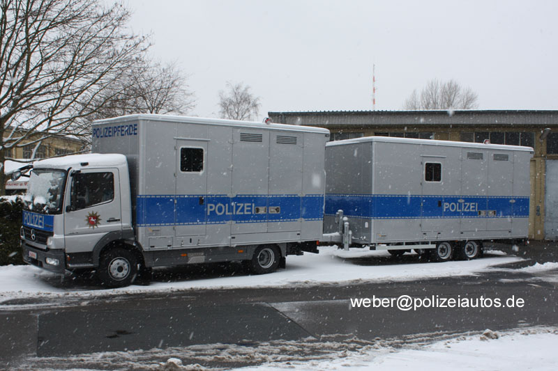 Zusammengekoppelter Pferdetransporter-Zug der Polizei Niedersachsen