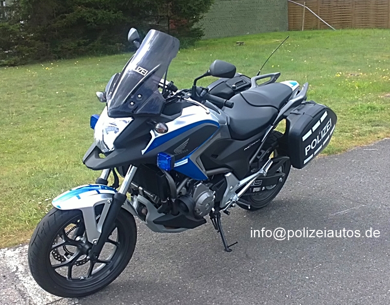 | Beschreibung: | Das Land Mecklenburg-Vorpommern hat vier dieser Motorräder gekauft. Eingekauft als „normale Zivilmaschinen“ wurden sie von der Firma Kaczmarek und Wilk in Schwerin zu Polizeikrädern um-bzw. ausgerüstet. Technische Daten Flüssigkeitsgekühlter Viertakt-Zweizylindermotor mit acht Ventilen und 670 cm³ Hubraum 35 KW (48 PS) bei 6.250 U/min Normalbenzin ABS Heizgriffe Staufach vor Fahrer Mehrscheibenkupplung im Ölbad Sechsgang-Schaltgetriebe ABS Sitzhöhe bei Leergewicht von 830 mm Tankvolumen 14,1 l 2. Batterie sowie Batterieladegerät im Staufach vor dem Fahrer Sondersignalanlage: 2 Frontblitzer, 1 Heckblitzer (oberhalb d.Rückleuchte) Digitalfunk (Motoradbedienteil von Motorola). Die komplette Funktechnik ist in beiden Seitenkoffen verbaut, womit deren Stauraum fast komplett aufgebraucht ist. Ein Bluetoothteil für die Verbindung zum Helm lässt der Funk vermissen, sodass wieder die alte Kabelverbindung herhalten muss. Abgesehen vom Preisvorteil, stellt nur die höhere Laufruhe auf Grund der 2 Zylinder einen Vorteil zur 1 Zylinder F650 GS von BMW dar. Der im Gegensatz zur Serienversion höhere Windschild bietet nur geringen Schutz im Vergleich zur BMW F 650GS mit Wunderlich Windschild. Fotos und Infos: Andreas Hoffmann |