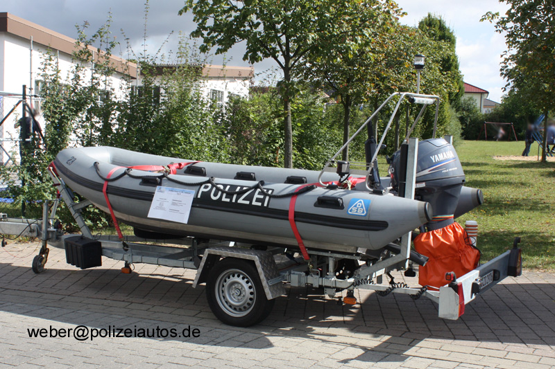 Beschreibung: | Schlauchboot 23 der Technischen Einsatzeinheit, TEE, T-Zug. Technische Daten: Schlauchboot 4.3 SR, halbstarr, Typ B Hersteller: Deutsche Schlauchboote (DSB) Länge: 4,30m Breite: 1,95m Tiefgang: 0,30m Gewicht: 1000kg 5 Sitzplätze Höchstgeschwindigkeit: 35 kn Aufbau: 6 unabhängige Luftkammern Aluminiumkiel mit Schlauchwulst Motor: Yamaha 4-Takt Außenborder mit 30 PS. Hauptaufgabenbereich: Versorgungs- und Zubringerboot in besonders seichten Gewässern Rettungsboot (Retten von Verletzten) Unterstützung von Tauchern. |
