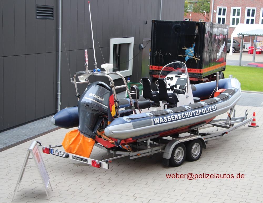 | Beschreibung: | Trailerbares Polizeistreifenboot 21 der WSP Niedersachsen, Heimathafen: Stade. Bauart: Festrumpfschlauchboot Typ: Ribcraft KM RC 6.80 Baujahr: 2012 Länge ü.A.: 6,80m Breite: 2,55m Tiefgang: 1,00m / 0,60m Leergewicht: 1360 kg Antrieb: Außenborder YAMAHA F225 FE TX EF1 Ultra Langschaft kw/PS je Motor: 165 kw/225 PS Höchstgeschwindigkeit sm/h km/h: 47 kn / ca. 87 km/h Dauergeschwindigkeit sm/h km/h: 25 kn / ca. 46 km/h Kraftstoffvorrat: 180 Liter, Niro Tank im Doppelboden. |