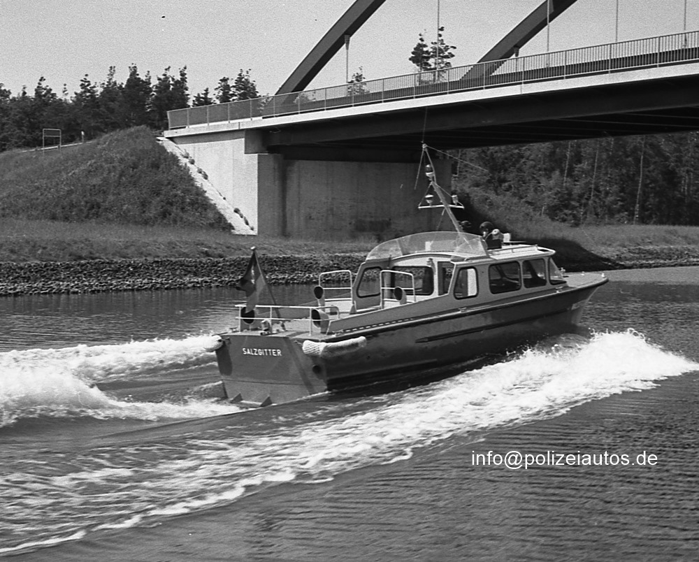 | Beschreibung: | Streifenboot der Wasserschutzpolizei Niedersachsen, hier anläßlich der Einweihung des Elbe-Seiten-Kanals am 15. Juni 1976. Am 31.10.1996 wurde das Boot nach 34 Jahren außer Dienst gestellt. Fotos: Warda |