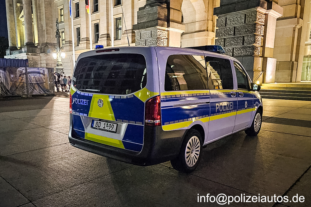 Mercedes-Benz Vito der Bundestagspolizei im nächtlichen Einsatz. Foto: Brey
