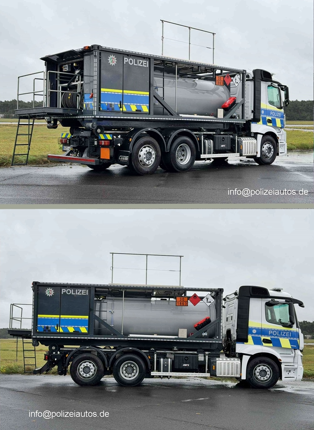 Beschreibung: | Wechselladerfahrzeug (WLF) der Bereitschaftspolizei Nordrhein-Westfalen, stationiert bei der Polizeifliegerstaffel Düsseldorf. Bei dem Fahrzeug handelt es sich um ein Einzelstück. Die ersten beiden Fotos zeigen es im Rahmen einer Wasserrettungsübung am Rhein bei Leverkusen-Hitdorf, am 21.August 2024. Mittlerweile wurde das Fahrzeug zusätzlich beschriftet, Fotos 3-5. Fotos: Jan Ohmen Sammlung: Manfred Wilewka |