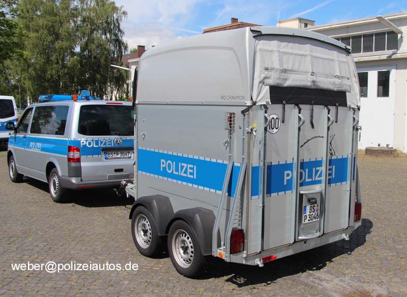 | Beschreibung: | VW T5 GP 4Motion der Reiterstaffel Niedersachsen mit einem angehängten, facegelifteten Pferdetransportanhänger, Typ Big Champion, des Herstellers Böckmann. Auch dieser Anhänger wurden am oberen Heck mit blauen LED-Blitzer ausgerüstet. |