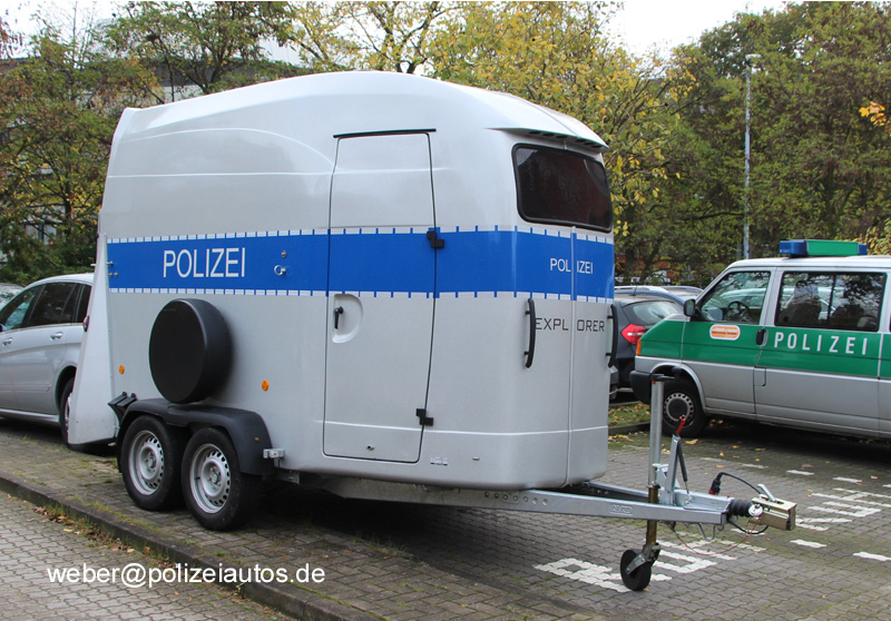 | Beschreibung: | Pferdetransportanhänger des Herstellers THIEL, der Reiterstaffel der Polizei Niedersachsen, in der EXPLORER-Ausführung, geeignet für den Transport von zwei Pferden. Die Polizei Baden-Württemberg nutzt die LEXOS-Ausführung. |