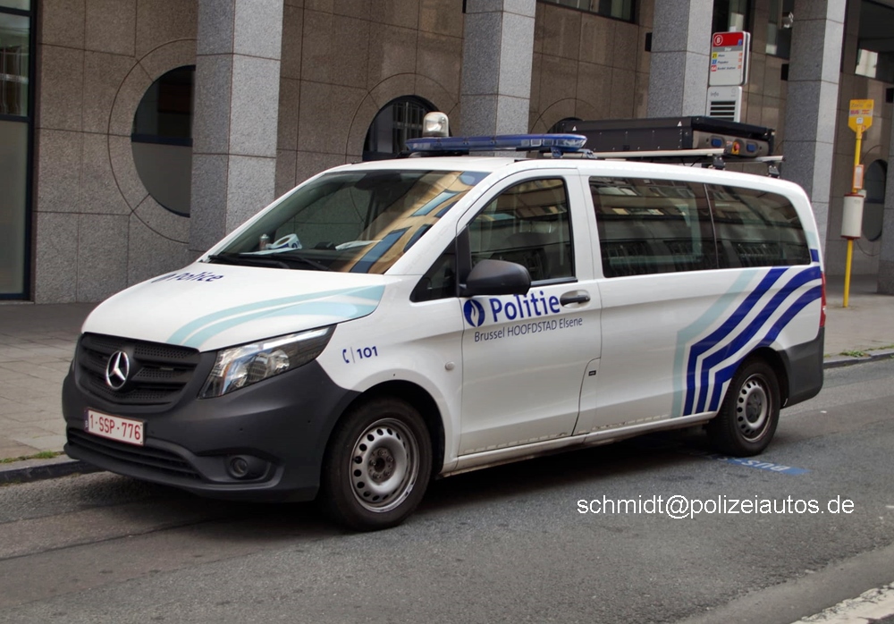 Einsatzfahrzeug der belgischen Polizei in der Hauptstadt Brüssel.