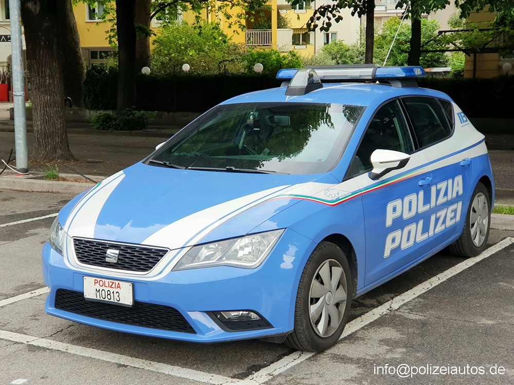 Funkstreifenwagen mit Schriftzug in italienisch und deutsch, wie es in Südtirol üblich ist.