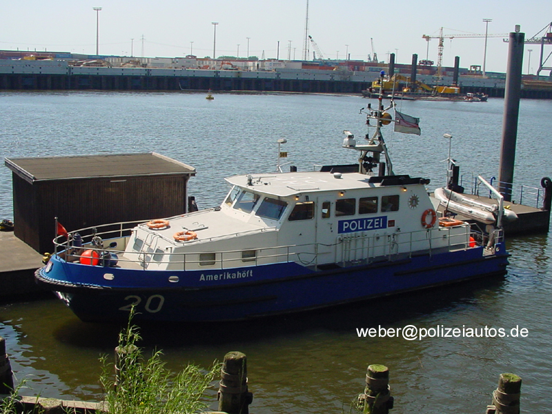 | Beschreibung: | Boot WS 20 (Amerikahöft) der Wasserschutzpolizei Hamburg. Technische Daten Bauwerft: Ernst Menzer Hamburg-Bergedorf Länge: 19,0 m Breite: 5,42 m Tiefgang: 1,46 m Motor: 2x MTU; 360 Kw Beiboot: Valiant V-400 mit Außenbordmotor |