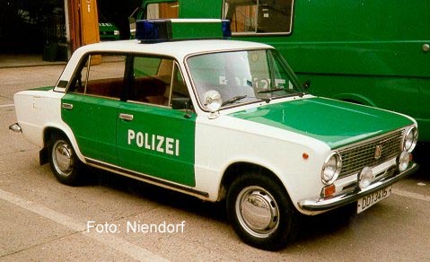 Funkstreifenwagen, umlackiertes Fahrzeug der ehemaligen Volkspolizei mit Hella RTK 4 Blaulichtbalken - Foto: R. Niendorf