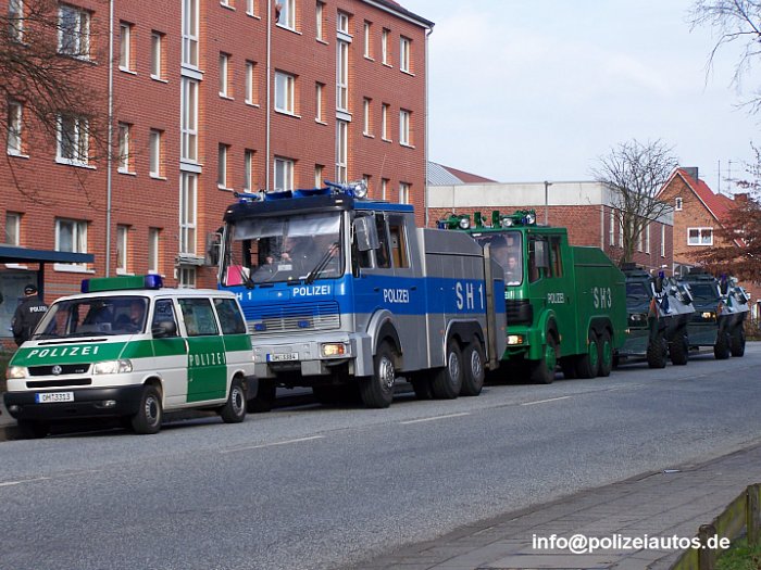 Sonderwagen-/Wasserwerferzug der Bereitschaftspolizei Schleswig-Holstein am Rande einer Demonstration in Lübeck