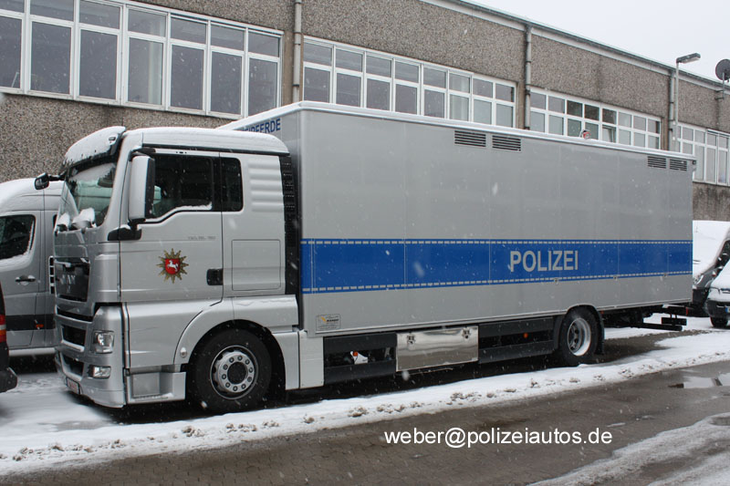 Ganz frisch: Noch nicht zugelassener Pferdetransporter der nds. Polizei. Aufbau der Fa.