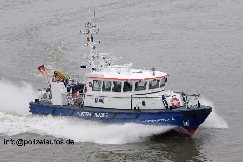 | Beschreibung: | Küstenboot -4-. Neubau für die niedersächsische Wasserschutzpolizei mit Heimathafen Emden. Technische Daten Schiffstyp: Küstenwache Länge: 21,0m Breite: 5,8m Baujahr: 2010 Werft: Damen Shipyards Group, Niederlande Typ: Damen Stan Patrol 2005 Geschwindigkeit: 25 – 35 Knoten Motorleistung: 880 – 1350 kW Fotos: Damen Shipyards Group, Niederlande |
