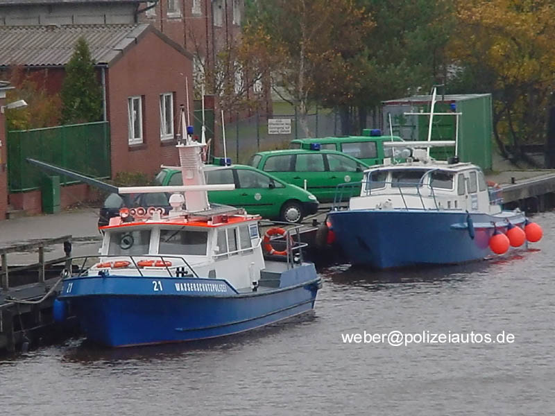 Boot 21 (mittlerweile a.D. /2013) der WSP Niedersachsen im Heimathafen Emden, im Hintergrund liegt die