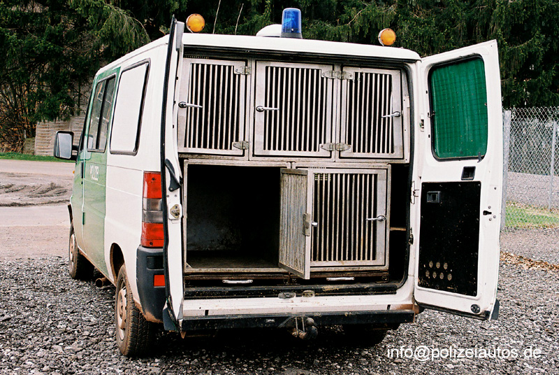 Diensthundeführerfahrzeug der saarländischen Polizei für 5 Hunde.