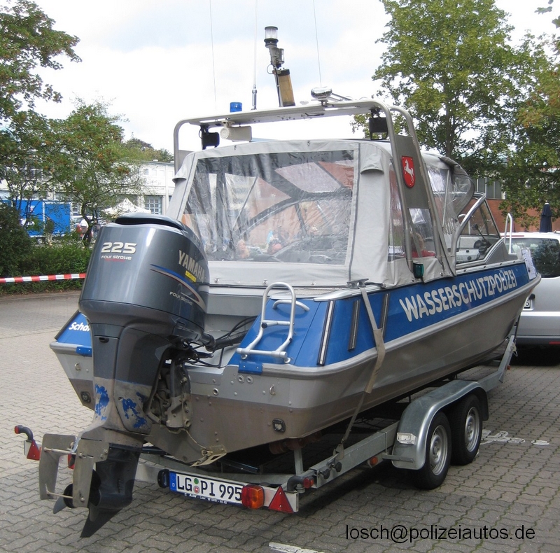 | Beschreibung: | Streifenboot 30 "Scharnebeck" der Wasserschutzpolizei Niedersachsen. Einsatzgebiete: Oberelbe, Elbe-Seitenkanal, Ilmenau. Baugleich dem Boot W34 "Nienburg", hier jedoch mit geschlossenem Verdeck. Es ersetzt das alte Streifenboot 30 |