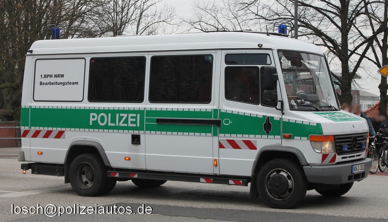 | Beschreibung: | Bearbeitungskraftwagen (Batkw) der 1. BPH NRW mit entsprechender Beschriftung. Auch dieser ehemalige Grukw V wird inzwischen als Bearbeitungskraftwagen weiter genutzt, im Gegensatz zu diesem Batkw mit auffälliger Beklebung. Die rot-weiße Schraffurbeklebung ähnelt der eines weiteren ehemaligen Grukw V, der sich jetzt im Dienst der Autobahnpolizei befindet. |