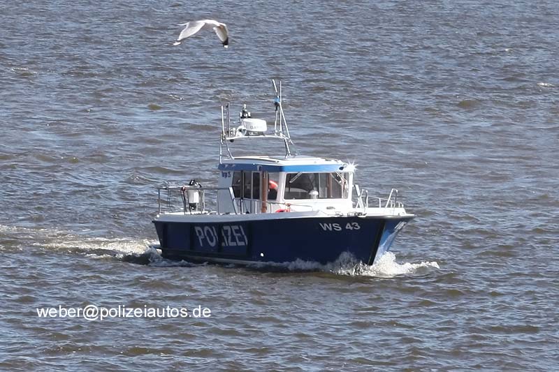 | Beschreibung: | Im Dezember 2014 erhielt die Wasserschutzpolizei Hamburg die neuen Hilfseinsatzboote WS 43 und WS 44, für die ausgesonderten WS 40-42. Die neue WS 43 und WS 44 können mit ihrem geringen Tiefgang von 1,10 Meter und ihren 25 Knoten Höchstgeschwindigkeit sowohl auf der Außenalster, den Kanälen als auch vielen anderen flachen Binnengewässern fahren. Damit können mit ihnen nicht nur die typischen Sportboot- und Schiffskontrollen vorgenommen werden, sondern sie können auch beim Hafengeburtstag oder dem Kirschblütenfest eingesetzt werden. Die Bootsrümpfe bestehen aus seewasserbeständigem, glasfaserverstärktem Kunststoff (GFK). Die Boote können bis zu einer Windstärke von acht Beaufort und einer Wellenhöhe von maximal vier Metern eingesetzt werden. Der wassergekühlte und mit Dieselkraftstoff betriebene Innenbordmotor verfügt über eine Leistung von 191 Kilowatt (260 PS) und erreicht eine maximale Dauergeschwindigkeit von 25 Knoten. Die neuen Dienstboote sind 8,38 Meter lang, 2,97 Meter breit und haben einen Tiefgang von 1,10 Meter. Später, 2018/2019, erhielten die Boote eine "Battenberg-Markierung" |