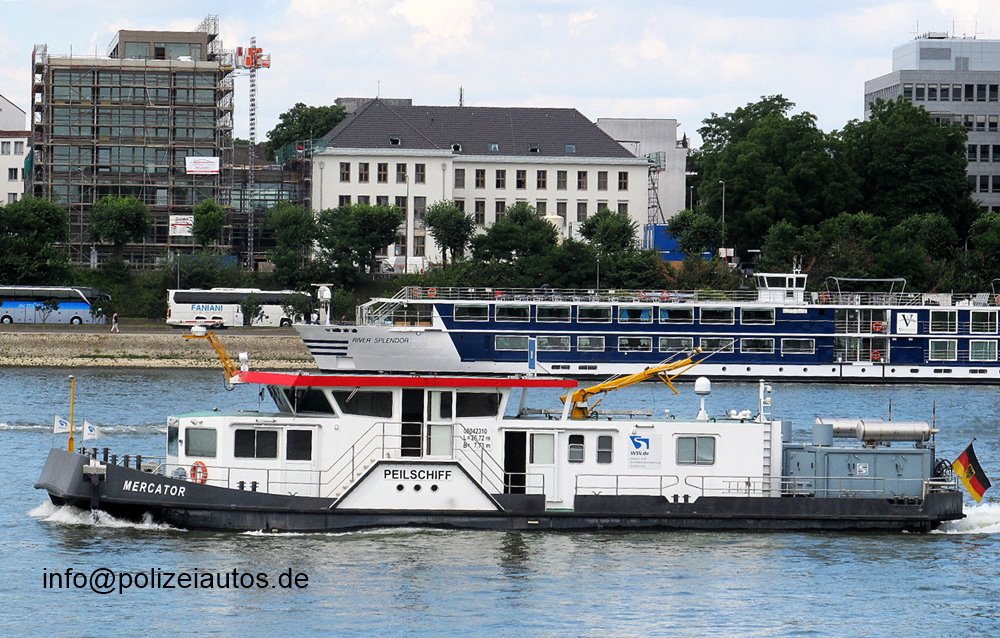 | Beschreibung: | Peilschiff "MERCATOR", hier unterwegs auf dem Rhein bei Köln. Technische Daten: Länge über alles: 26,72 m Breite über alles: 7,73 m Seitenhöhe: 1,60 m Tiefgang: 0,80 m, Ballasttiefgang: 1,30 m Antriebsmotor: 2 x Schottel Navigator Typ 320 2 X 195 kW bei 2300 U/min Propeller: 2 x Schottel Ruderpropeller, Durchmesser 750 mm Bugstrahlruder: Side Power Typ SP 300 HYD Einsatzgebiet: Niederrhein und Westdeutsche Kanäle Baujahr: 2013 Baukosten: 2,7 Millionen Euro Bauwerft: Hermann Barthel Betreiber: Wasserstraßen- und Schiffffahrtsamt (WSA) Duisburg-Rhein Heimathafen: Duisburg-Homberg Namensgeber: ist der Duisburger Wissenschaftler Gerhard Mercator, 1512-1594 Messsystem: Fächerecholotsystem EM 3002 Triple-Head, EA 400 mit 2 Side- scanschwingern und einem Vertikalschwinger GPS-Kompass Seepath 330 Bewegungssensor MRU5+ von Kongsberg Maritime 2 Trimble GNNS-Empfänger Besatzung bei Messfahrt: nautisches Personal (2) Messtechniker (1). INFO Fotos: Manfred Wilewka |