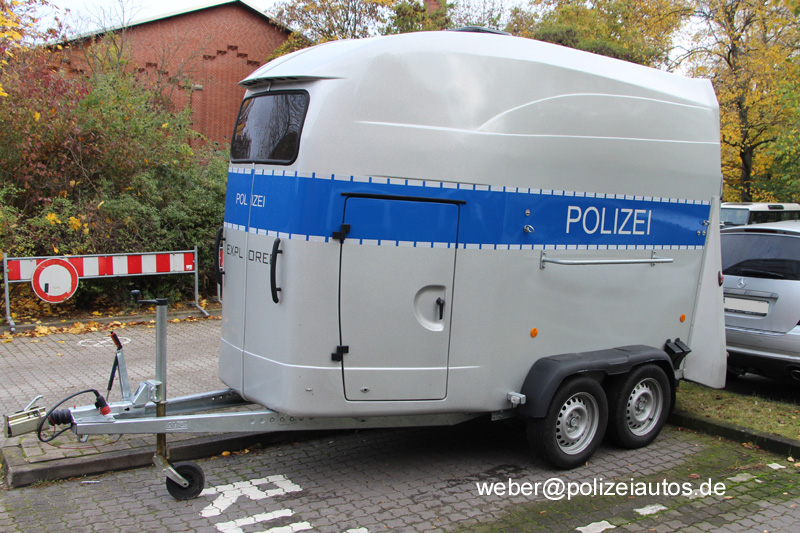 | Beschreibung: | Pferdetransportanhänger des Herstellers THIEL, der Reiterstaffel der Polizei Niedersachsen, in der EXPLORER-Ausführung, geeignet für den Transport von zwei Pferden. Die Polizei Baden-Württemberg nutzt die LEXOS-Ausführung. |