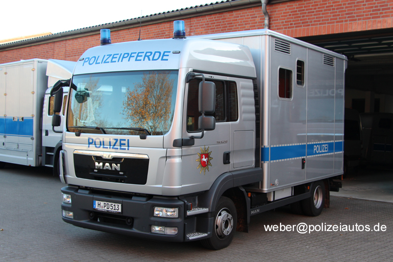 | Beschreibung: | Pferdetransporter der Reiterstaffel Niedersachsen am Standort Hannover. Das neue Fahrzeug ersetzt diesen alten Mercedes-Benz Atego, wobei der Aufbau des alten Fahrzeuges (Fa. Niehoff) modifiziert und auf das neue Fahrgestell gesetzt wurde. Es können zwei Pferde transportiert werden. |