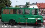 Bundeseinheitlicher Lautsprecherkraftwagen mit großer Fliegersichtkennung H.H 63 auf dem Dachspoiler und beidseitigen Hamburger Landeswappen auf den vorderen Seitentüren. Desweiteren ist das Fahrzeug mit Frontblitzern ausgerüstet. |