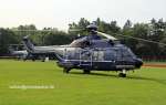 Maschine in blauer Farbgebung mit BUNDESPOLIZEI-Beschriftung der Fliegerstaffel Fuhlendorf (Nord) mit Seeausstattung (Schwimmer, Winch und Kamera). Aufgenommen am 21.08.2011 beim Zwischenstopp in Blumberg nach der Rückverlegung vom Brandenburger Tor (60 Jahre BPol). Fotos: Daniel Bujack, www.helifotos.de |