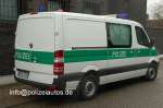 Gefangenentransportkraftwagen in grün-weißer Farbgebung. Am Heck befindet sich der Schriftzug www.polizei-nrw.de. Außerdem verfügt das Fahrzeug über eine Anhängerkupplung. Fotos: Marcel Spichalla |
