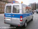 Einsatzfahrzeug der Polizei Hamburg. Dieses Testfahrzeug hatte noch Flachdach und Hecktüren, die späteren Beschaffungen wurden mit Mitteldach und Heckklappe ausgeliefert.