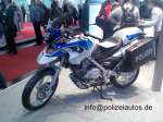 Geländegängiges Funkkraftrad mit Front- und Heckblitzern, ausgestellt auf der CeBit 2008, auf dem Gemeinschaftsstand des niedersächsischen Innenministeriums und der Polizei. Fotos: Benjamin Suerland |