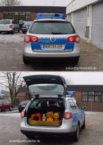 Erprobungsfahrzeug mit Erdgasantrieb. Neben den bereits vorhandenen VW Caddy und VW Touran werden diese Passat demnächst im tägl. Streifendient auf ihre Alltagstauglichkeit getestet. Die gängige Dieselvariante wird seit Dezember 2011 gefahren. |