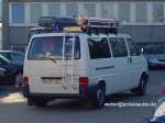 Im Nachhinein wurde an der rechten Fahrzeugseite noch eine Außenjalousie angebaut, sowie eine Sondersignaleinrichtung nachgerüstet. Das Fahrzeug wird im Einsatzfall mittels Magnettafeln und Magnetblaulichtern als Polizeifahrzeug kenntlich gemacht. Als Besonderheit sind hier sicher die verwendeten Magnetschilder anzusehen- siehe Bild 2. Ausgebaut wurden die Fahrzeuge von der Fa. Bösenberg. |