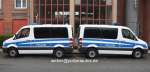 Gruppenkraftwagen der Bereitschaftspolizei Schleswig-Holstein seit 2011. Die zweite Ansicht zeigt die aktuelle und die Vorgängerversion. |