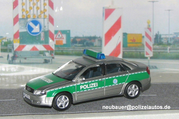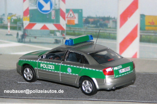 Das Modell wurde komplett umlackiert. Die Aufschrift "POLIZEI", sowie Polizeisterne mit Landeswappen wurden angebracht. Wie beim Originalfahrzeug, wurde das Modell mit REFLEXSTREIFEN ausgestattet. Desweiteren wurde eine Hella RTK-Blaulichtanlage und eine Funkantenne angebracht.