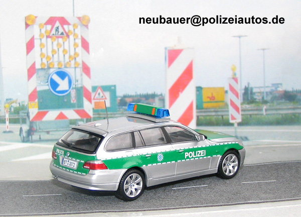 Nach der vorbildgerechten Umlackierung wurde die Beschriftung "POLIZEI", sowie die Polizeisterne mit Landeswappen angebracht. Wie beim Originalfahrzeug wurde das Modell mit Reflexstreifen ausgestattet. Desweiteren wurde das Modell mit einer Hella RTK-Blaulichtanlage, einer Funkantenne und den entsprechenden Kennzeichen versehen.