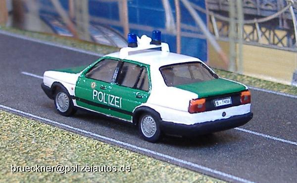PKW (seriennah), Berlin 1:87 VW Jetta II Grundmodell: Eigenbau Maßstab:1:87 Einsatzgebiet des Vorbilds: (Ehemalige) örtliche Verkehrsdienste Berlin6254 Aufrufe seit 18.04.2008 Beim Resin-Modell von MFM wurden die Stoßstangen gemäß dem Facelift-Vorbild geändert. Dann wurde das Modell vorbildgerecht lackiert und beschriftet. Die Blaulichtbrücke wurde aus Herpa-Teilen gefertigt. Umbau: Brückner Zur Liste --- Serien- oder Sondermodelle --- Maßstab 1:43- Polizei Brandenburg 1:43- Bundespolizei (ehem. BGS ) 1:43- Polizei Hamburg 1:43- Polizei Niedersachsen 1:43- Polizei Nordrhein-Westfalen 1:43- Polizei Bayern 1:43- Polizei Berlin 1:43- Volkspolizei 1:43 Maßstab 1:87- Bundespolizei (1:87)- Feldjäger 1:87- Polizei Bremen 1:87- Polizei Hamburg 1:87- Bundesgrenzschutz (1:87)- Polizei Mecklenburg-Vorpommern 1:87...- Ordnungsamt (1:87)- Polizei Baden-Württemberg 1:87- Polizei Bayern 1:87- - Bereitschaftspolizei Bayern 1:87- - Kleintransporter (seriennah), Bayer...- - Pkw (seriennah), Bayern 1:87- Polizei Berlin 1:87- - Eigenbauten, Berlin 1:87- - Kleintransporter (seriennah), Berli...- - LKW (seriennah), Berlin 1:87- - PKW (seriennah), Berlin 1:87- Polizei Brandenburg 1:87- Polizei Hessen 1:87- Polizei Niedersachsen 1:87- Polizei Nordrhein-Westfalen 1:87- Erprobungsfahrzeuge 1:87- Polizei Rheinland-Pfalz 1:87- Polizei Sachsen 1:87- Polizei Schleswig Holstein 1:87- Polizei Thüringen 1:87- Polizei Sachsen-Anhalt 1:87- Volkspolizei 1:87- Modelle im Einsatz (Dioramen) 1:87- Zoll 1:87 Maßstab 1:160 Sonstige Maßstäbe