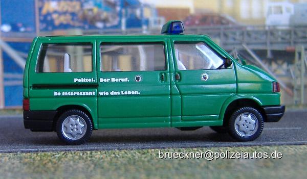 Polizei Baden-Württemberg 1:87 VW Transporter T4 Grundmodell: Wiking Maßstab:1:87 Einsatzgebiet des Vorbilds: Bereitschaftspolizei B-W5640 Aufrufe seit 03.05.2009 Da im Decalbogen von TL-Decals die Werbe-Beschriftung aus BaWü beinhaltet war, wurde dieser T4 von Wiking dementsprechend umgerüstet. Umbau: Brückner Zur Liste --- Serien- oder Sondermodelle --- Maßstab 1:43- Polizei Brandenburg 1:43- Bundespolizei (ehem. BGS ) 1:43- Polizei Hamburg 1:43- Polizei Niedersachsen 1:43- Polizei Nordrhein-Westfalen 1:43- Polizei Bayern 1:43- Polizei Berlin 1:43- Volkspolizei 1:43 Maßstab 1:87- Bundespolizei (1:87)- Feldjäger 1:87- Polizei Bremen 1:87- Polizei Hamburg 1:87- Bundesgrenzschutz (1:87)- Polizei Mecklenburg-Vorpommern 1:87...- Ordnungsamt (1:87)- Polizei Baden-Württemberg 1:87- Polizei Bayern 1:87- - Bereitschaftspolizei Bayern 1:87- - Kleintransporter (seriennah), Bayer...- - Pkw (seriennah), Bayern 1:87- Polizei Berlin 1:87- - Eigenbauten, Berlin 1:87- - Kleintransporter (seriennah), Berli...- - LKW (seriennah), Berlin 1:87- - PKW (seriennah), Berlin 1:87- Polizei Brandenburg 1:87- Polizei Hessen 1:87- Polizei Niedersachsen 1:87- Polizei Nordrhein-Westfalen 1:87- Erprobungsfahrzeuge 1:87- Polizei Rheinland-Pfalz 1:87- Polizei Sachsen 1:87- Polizei Schleswig Holstein 1:87- Polizei Thüringen 1:87- Polizei Sachsen-Anhalt 1:87- Volkspolizei 1:87- Modelle im Einsatz (Dioramen) 1:87- Zoll 1:87 Maßstab 1:160 Sonstige Maßstäbe
