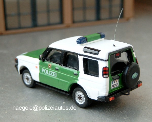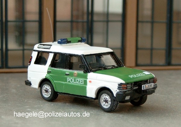 Dieser Umbau entstand auf Basis des Kleinserienmodells von Ulrich Adam (www.modellpolente.de) und wurde noch um einige Feinheiten ergänzt. Dazu gehören unter anderem Details wie vergitterte Scheinwerfer, Kennzeichen und eine Antenne sowie Scheibenwischer, Beschriftungen und die Anhängerkupplung (Haegele).