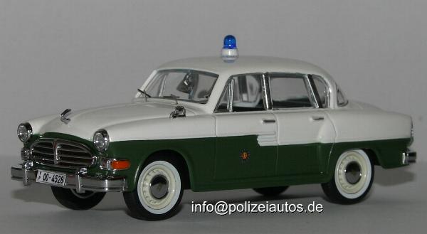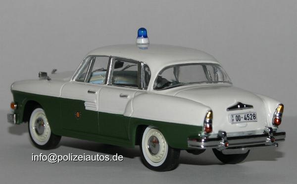 Das Grundmodell im Maßstab 1:43 wurde zerlegt und lackiert. Nach dem Bemalen der vielen Details wurden Blaulicht, Wappen und Kennzeichen angebracht. (Leider fehlt in unserer Datenbank noch ein Bild des Originalfahrzeugs!) Umbau: René Schwolow